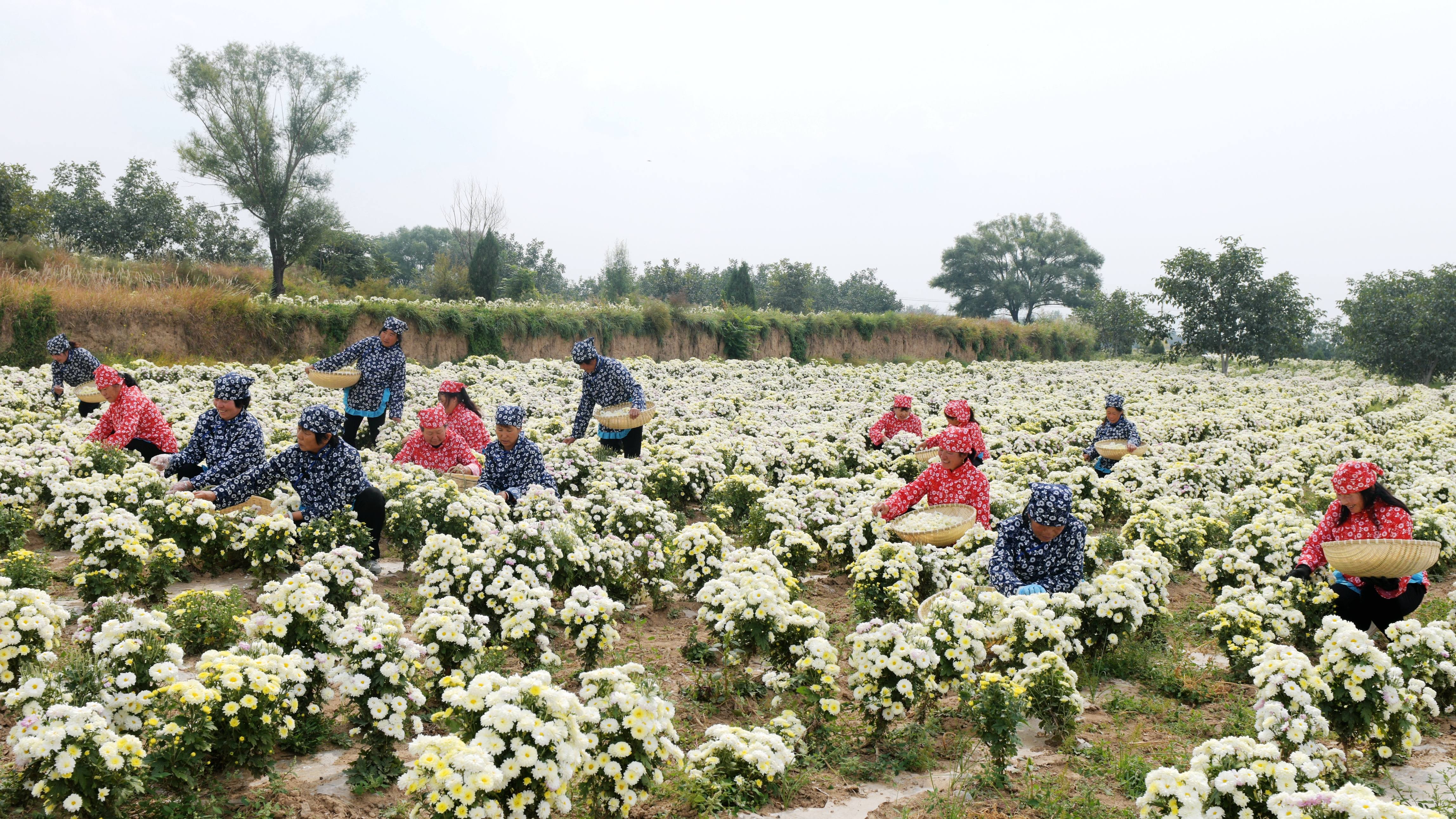 每年菊花節(jié),菊農(nóng)們身穿盛裝采摘菊花成為一道風景。(資料圖)
