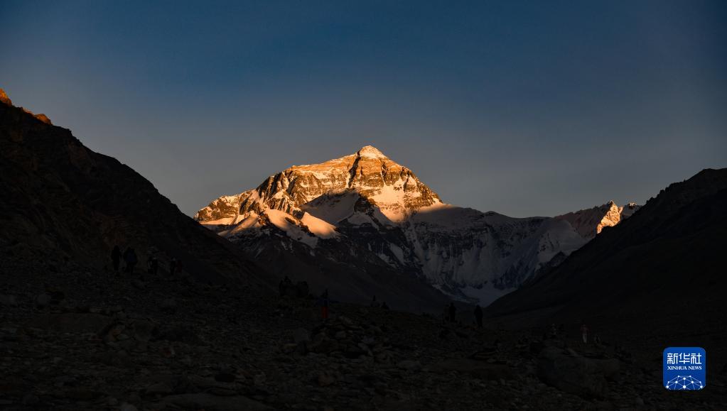 6月4日,最后一抹陽光即將從珠峰頂上消逝。新華社記者 費(fèi)茂華 攝