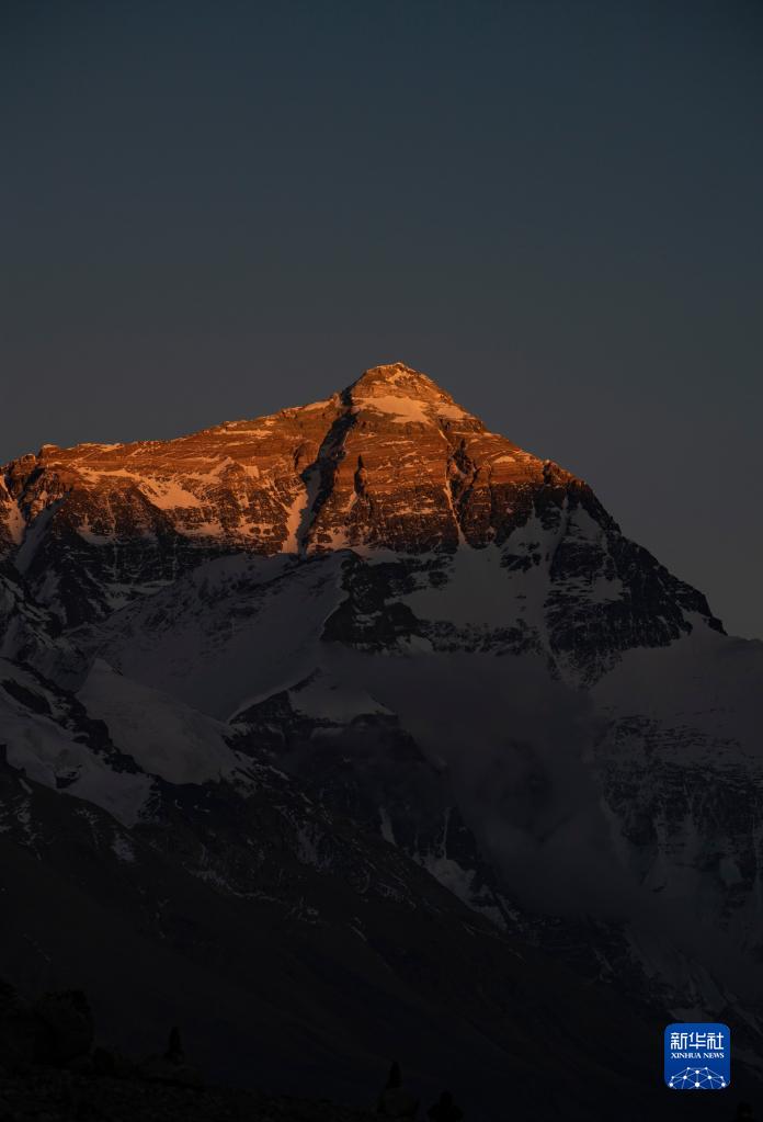 6月4日拍攝的太陽完全落山之后的珠峰。新華社記者 費(fèi)茂華 攝
