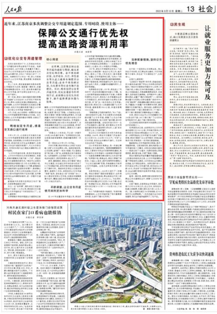 人民日?qǐng)?bào)|江蘇南京:保障公交通行優(yōu)先權(quán) 提高道路資源利用率
