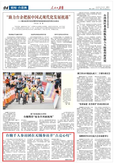 人民日報海外版|臺胞千人參訪團在無錫參訪并“點亮心燈”