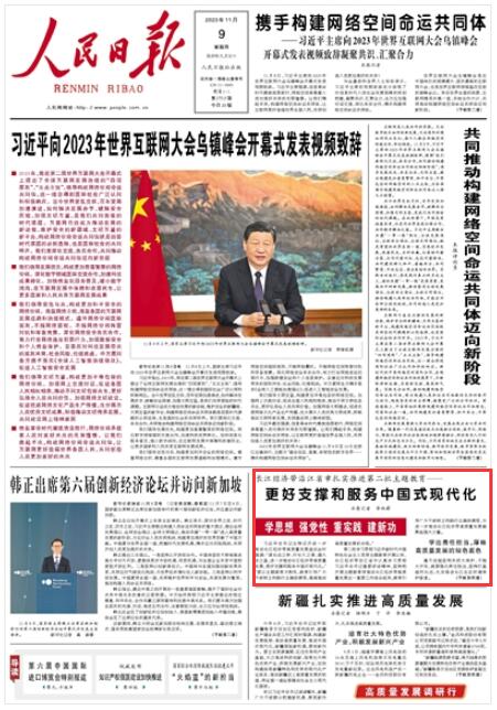 《人民日報》2023年11月9日1版 版面截圖