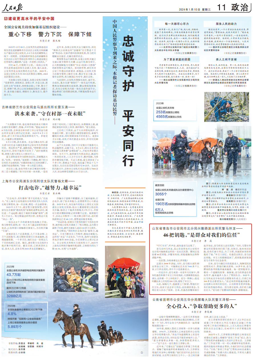 第四個(gè)人民警察節(jié)到來(lái)之際,人民日?qǐng)?bào)記者探訪青島基層民警馬懷龍