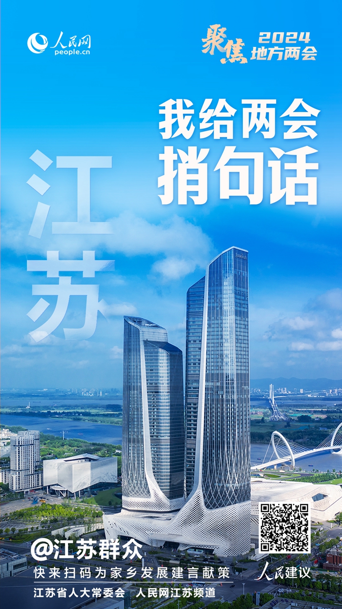 2024年江蘇省兩會(huì)即將召開(kāi)。為廣泛匯集社會(huì)各界關(guān)于經(jīng)濟(jì)發(fā)展、民生保障、教育人才、科技創(chuàng)新、農(nóng)業(yè)農(nóng)村現(xiàn)代化等方面的好建議,即日起,人民網(wǎng)聯(lián)合江蘇省人大常委會(huì)推出“我給江蘇兩會(huì)捎句話”大型建言征集活動(dòng),廣大網(wǎng)友可通過(guò)人民網(wǎng)“領(lǐng)導(dǎo)留言板”小程序、“人民網(wǎng)+”客戶端等渠道,為家鄉(xiāng)發(fā)展積極建言獻(xiàn)策。
