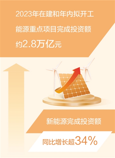 本報北京2月22日電 (記者丁怡婷)記者近日從國家能源局獲悉:2023年,我國能源投資保持快速增長,據(jù)監(jiān)測,全國在建和年內(nèi)擬開工能源重點(diǎn)項目完成投資額約2.8萬億元。分類別看,常規(guī)項目和新業(yè)態(tài)項目完成投資額同比分別增長16%和152.8%。分地區(qū)看,東部、中部、西部地區(qū)完成投資額同比分別增長28.5%、13.6%、22.5%。