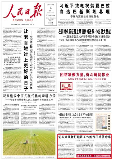 《人民日報》2024年3月4日01版 版面截圖