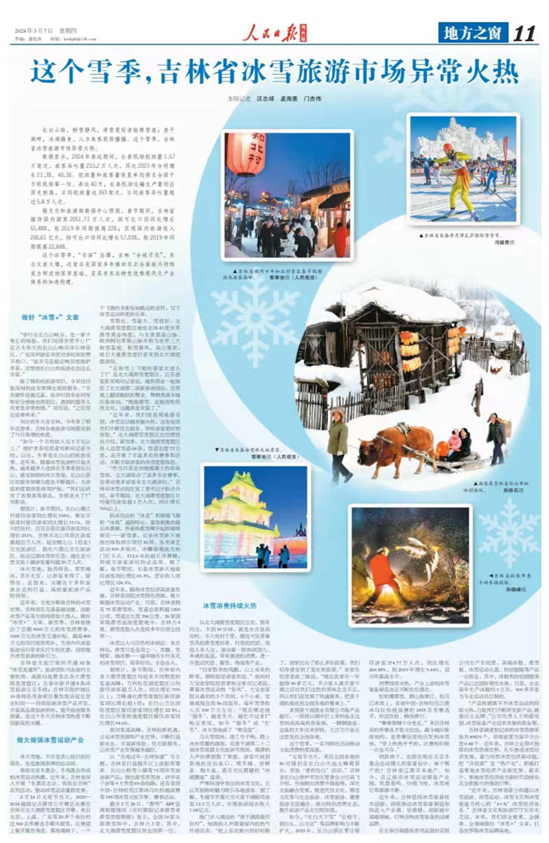 人民日?qǐng)?bào)海外版整版聚焦吉林:這個(gè)雪季,冰雪旅游市場(chǎng)異常火熱!