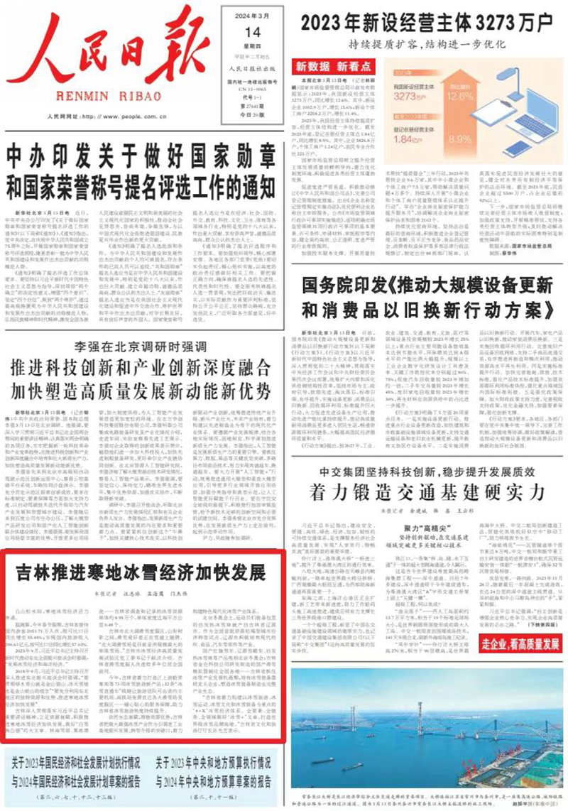 人民日?qǐng)?bào)頭版聚焦吉林:寒地冰雪經(jīng)濟(jì)加快發(fā)展