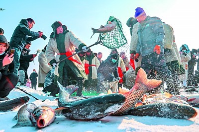 每年1月,博斯騰湖都會(huì)舉行冬捕活動(dòng),這也是當(dāng)?shù)貧v史悠久的冰雪民俗文化活動(dòng)之一。經(jīng)過春天的繁殖,夏天的成長(zhǎng),秋天的肥碩,冬天就成了最好的捕魚時(shí)節(jié)。正所謂“三季靠一冬”,每年這個(gè)時(shí)節(jié),冬捕就是這里最熱鬧、最歡樂的事兒。