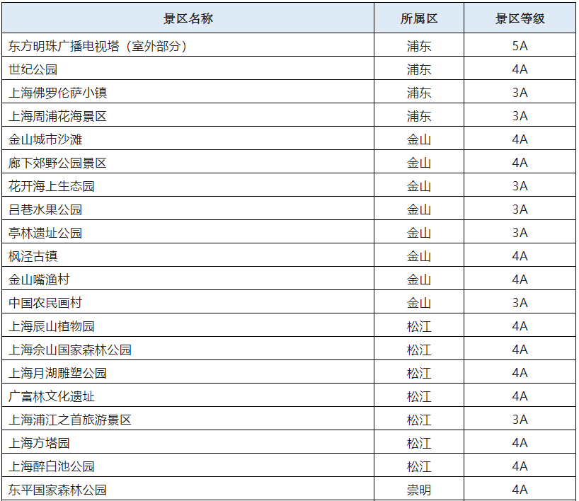 恢復(fù)開放的32家A級旅游景區(qū)(圖片來自上海市文旅局,央廣網(wǎng)發(fā))