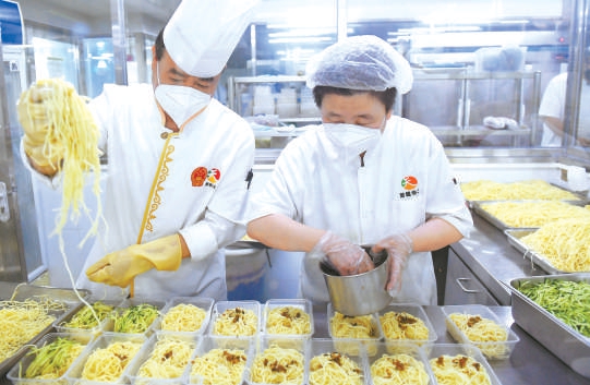 夏至吃面。20日,峨嵋酒家的涼面外賣訂單不斷。本報(bào)記者 閻彤?dāng)z
