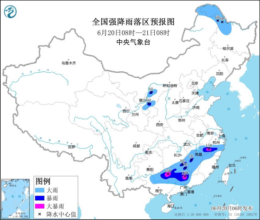記者獲悉,中央氣象臺6月20日6時繼續(xù)發(fā)布暴雨黃色預(yù)警。預(yù)計,6月20日8時至21日8時,內(nèi)蒙古東北部、黑龍江西北部、寧夏北部、江西、湖南南部、浙江南部、華南北部等地部分地區(qū)有大到暴雨。其中,江西東北部、浙江西南部、廣西東北部、廣東西北部等地部分地區(qū)有大暴雨(100~180毫米)。
