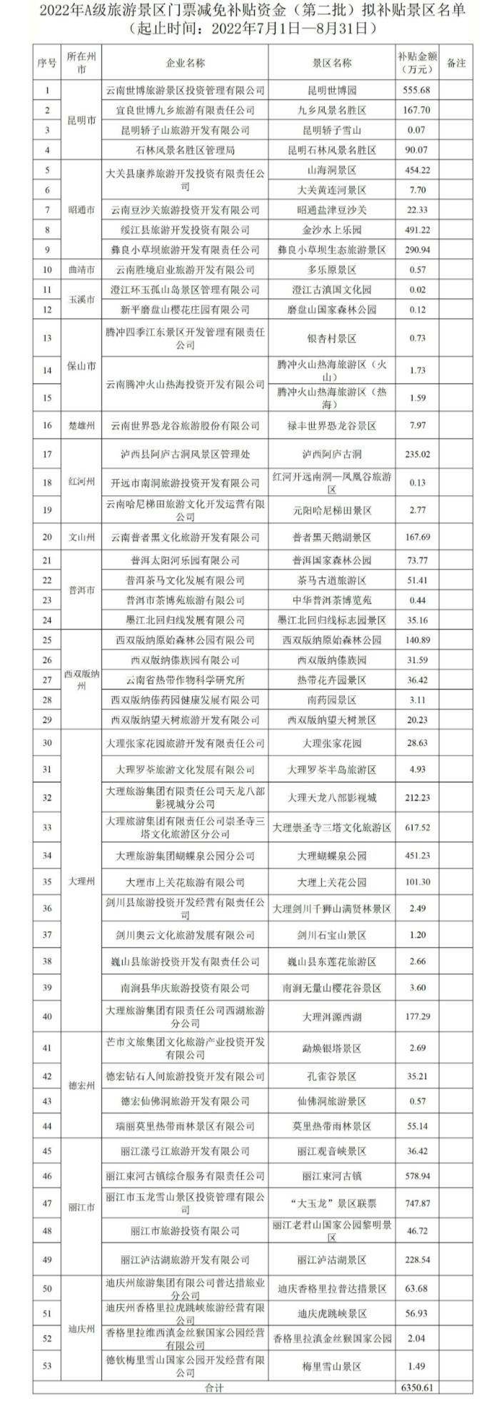 央廣網(wǎng)北京10月20日消息 據(jù)云南省文化和旅游廳消息,云南省文化和旅游廳已組織完成2022年A級(jí)旅游景區(qū)門票第二批(起止時(shí)間:2022年7月1日—8月31日)補(bǔ)貼資金審核工作,現(xiàn)對(duì)符合補(bǔ)貼資金撥付的A級(jí)旅游景區(qū)名單進(jìn)行公示。