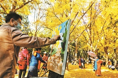 藝術(shù)家進園林,“落葉拼金秋”,在參觀完地壇公園內(nèi)標(biāo)志性的點位后,藝術(shù)家們帶著自己的作畫工具,選取心儀的一角,用畫筆勾勒心中最美地壇。園內(nèi),還有群眾自發(fā)的樂隊、舞蹈團等藝術(shù)團體及攝影愛好者,用自己獨特的方式“記錄”地壇秋景,讓古老地壇充分沾染“文藝范兒”。