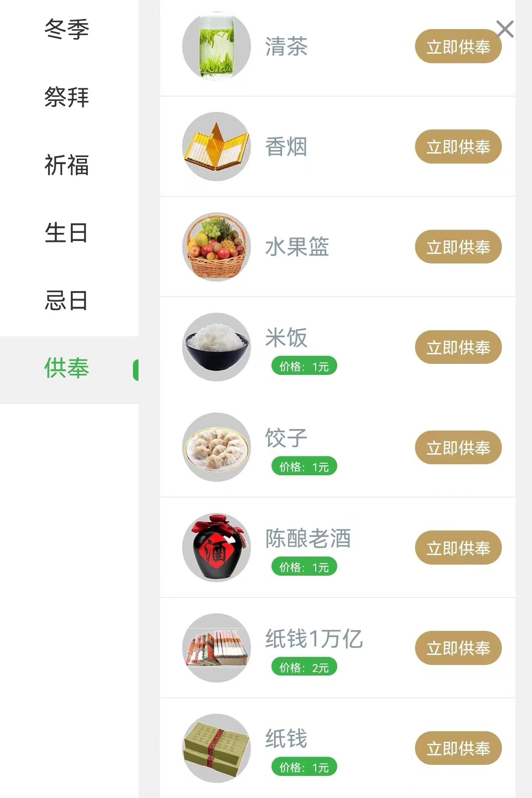 記者發(fā)現(xiàn),用戶免費(fèi)創(chuàng)建“網(wǎng)上紀(jì)念館”后,可以在紀(jì)念館進(jìn)行“祭拜、祈福、獻(xiàn)花、供奉”等虛擬活動(dòng)。而在推出的這些虛擬服務(wù)中,有些是免費(fèi)的,有些則要收取費(fèi)用。比如,在某平臺(tái)送出一個(gè)“生日快樂(lè)”蛋糕,需要微信支付2元,送一疊“忌日紙錢”需要支付1元,一份“米飯”1元。