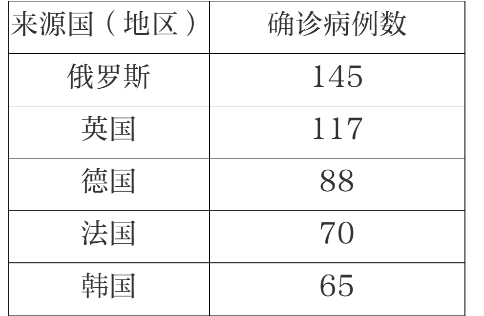 境外輸入確診病例來源國(地區(qū))情況