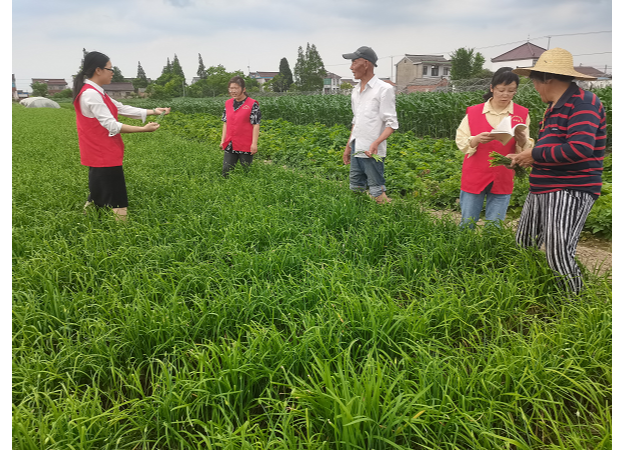 農技志愿者在田頭宣傳韭菜無公害種植技術(央廣網(wǎng)發(fā) 通訊員供圖)