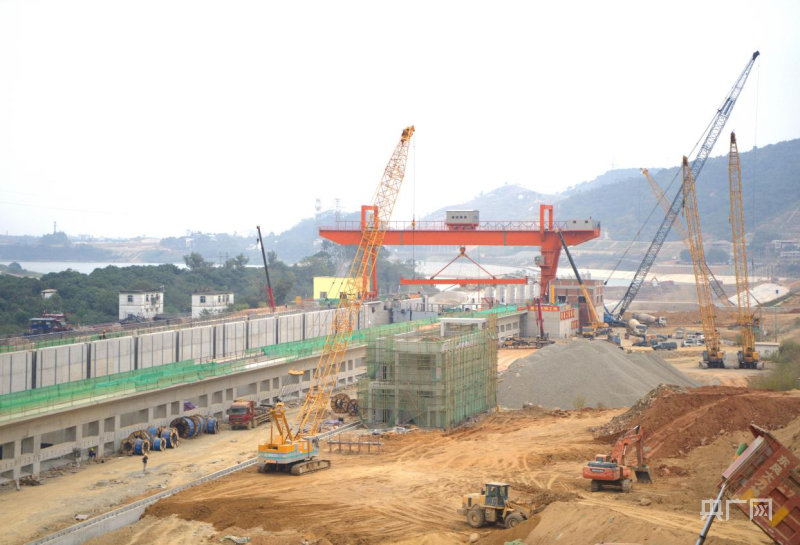西津水利樞紐二線船閘工程建設(shè)正緊鑼密鼓進行中(央廣網(wǎng)發(fā) 蔡俊聰 攝)