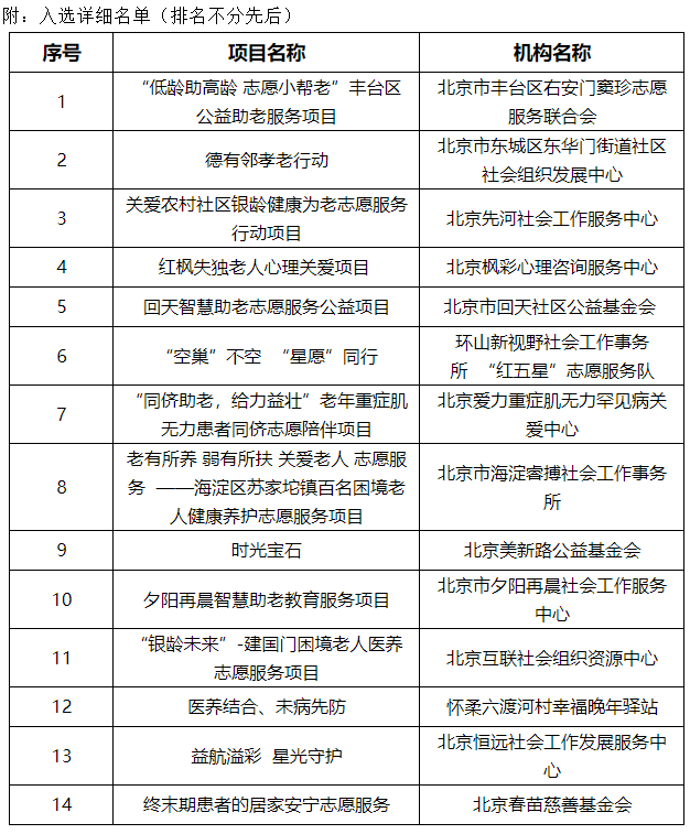北京:14個(gè)養(yǎng)老志愿服務(wù)項(xiàng)目入選“銀齡伙伴”資助名單