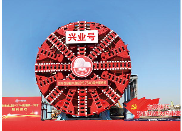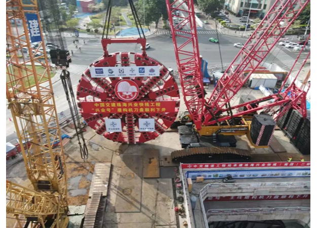珠海興業(yè)快線隧道工程是未來(lái)連通港珠澳大橋和深中通道,把珠海市打造成為“粵港澳交通樞紐”的重要工程。盾構(gòu)隧道長(zhǎng)度僅1740米,但地質(zhì)情況極為復(fù)雜,其中:硬巖段占比超過(guò)70%,被稱(chēng)“地質(zhì)博物館”,且為首個(gè)國(guó)內(nèi)直徑最大雙層疊落盾構(gòu)工程,雙層疊落長(zhǎng)約604米,盾構(gòu)法施工面臨不少世界級(jí)難題。為順利完成這項(xiàng)重大工程,中交天和立足自主研發(fā),著眼科技創(chuàng)新,為適應(yīng)在硬巖地質(zhì)中提高掘進(jìn)速度,實(shí)現(xiàn)隧道掘進(jìn)和管片拼裝同步施工,成功研制中國(guó)首臺(tái)超大直徑同步掘進(jìn)機(jī)“興業(yè)號(hào)”。該掘進(jìn)機(jī)國(guó)產(chǎn)化率達(dá)98%以上、刀盤(pán)直徑15.76米,全長(zhǎng)超130米,攻克了許多難以想象的世界級(jí)難題。