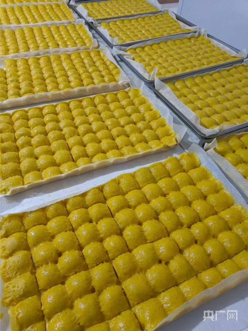 央廣網(wǎng)興安12月29日消息(記者王秋蕾 通訊員譚艷麗)“咱家的大黃米黏豆包,用的都是當(dāng)?shù)貎?yōu)質(zhì)的黃米,純手工制作,傳統(tǒng)口味,不含任何添加劑、色素,吃起來嘎嘎香,喜歡的老鐵們可以放心下單?!敝辈ラg內(nèi),張兆儀一邊用手機(jī)拍攝著工人現(xiàn)場制作粘黏豆包的鏡頭,一邊向直播間的網(wǎng)友們介紹著。