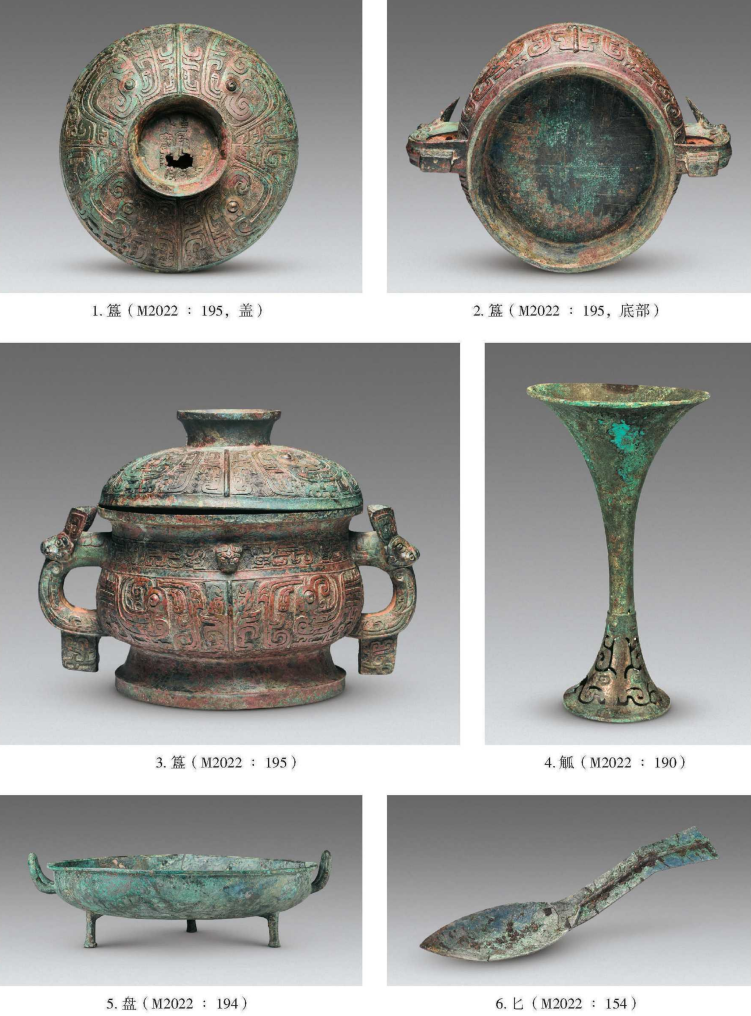 此次公布考古資料的墓葬為M2022墓,該墓葬墓室較大,且東側(cè)對應(yīng)陪葬一座較大的車馬坑。墓內(nèi)隨葬器物種類豐富,數(shù)量較多,包括青銅器1045件(套)、玉器60件(套),其中青銅禮、樂器16件,且發(fā)現(xiàn)殉人和殉狗,顯示墓主人具有較高的社會地位。