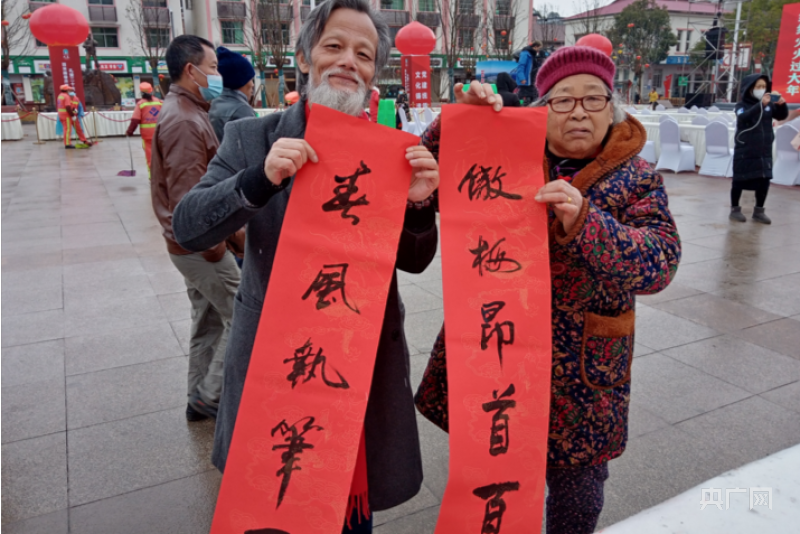 居民獲得春聯(lián)(央廣網(wǎng)發(fā) 姜連貴攝)