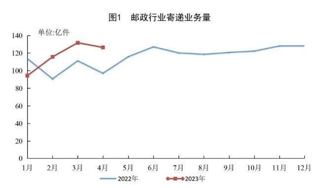 4月份,郵政行業(yè)寄遞業(yè)務(wù)量完成126.4億件,同比增長(zhǎng)30.5%。其中,快遞業(yè)務(wù)量完成102.1億件,同比增長(zhǎng)36.4%。