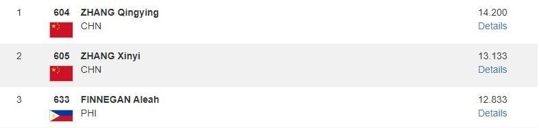 女子自由操項(xiàng)目,張清穎以13.233分再奪一枚金牌。另一名中國選手邱祺緣以12.133分排名第七。