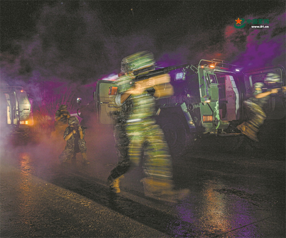 武警重慶總隊機動支隊開展夜間突擊訓練。李哲 攝