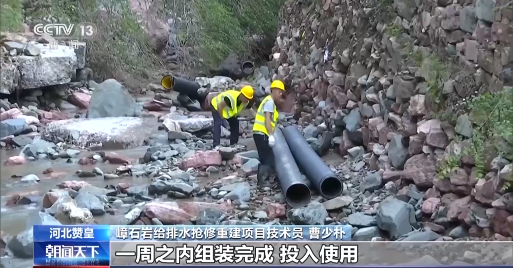 嶂石巖給排水搶修重建項目技術員 曹少樸:我們現(xiàn)在投入大量的工人,還有管理人員,現(xiàn)在是三班倒,在緊急搶修中,一周之內組裝完成,投入使用。