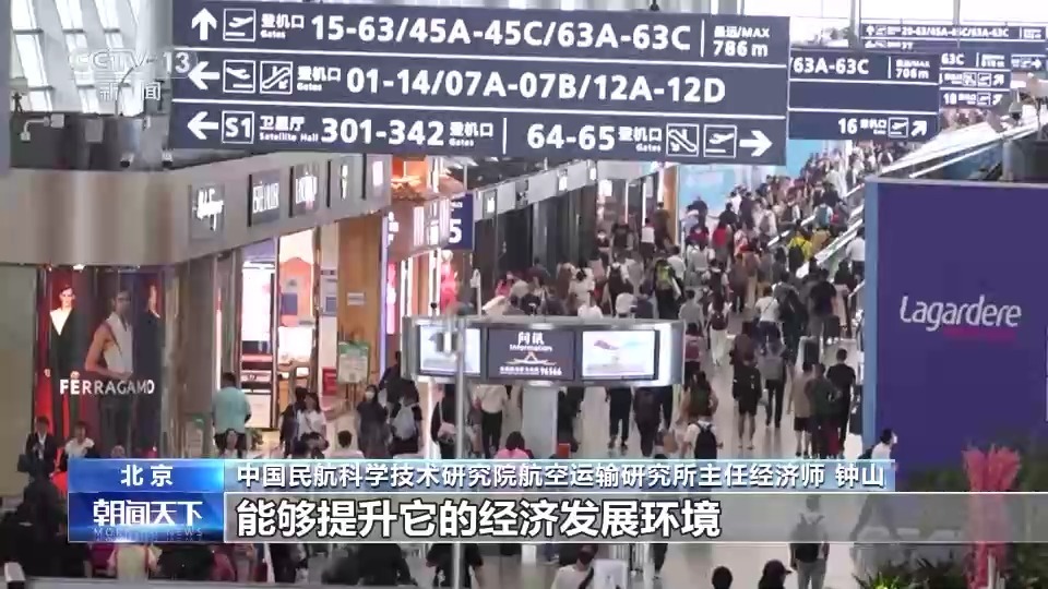 中國民航科學(xué)技術(shù)研究院航空運(yùn)輸研究所主任經(jīng)濟(jì)師 鐘山:通過我們這種“干支通、全網(wǎng)聯(lián)”以及通程航班的模式,能夠讓我們?nèi)?、四線城市的旅客,融到整個國家的經(jīng)濟(jì)社會建設(shè)中,能夠提升它的經(jīng)濟(jì)發(fā)展環(huán)境。特別是從統(tǒng)一大市場的開放角度來看,這個是最終能夠促進(jìn)我們國內(nèi)市場的銜接。