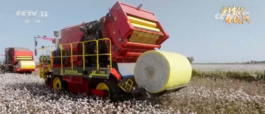 這幾年,新疆絕大部分地區(qū)都已經(jīng)實現(xiàn)了機(jī)械化采棉。棉花采收打包一體機(jī),除了自動采棉之外,還有打包的功能,當(dāng)?shù)厝私o它取了個特別形象的名字叫“下蛋機(jī)”。當(dāng)裝棉花的車廂裝滿后,它的尾部會自動吐出一個大棉包,這個棉包用金黃色包裝膜包裹著,從空中俯瞰像是一枚巨大的“金蛋”,既干凈又方便后續(xù)運輸。這些“下蛋機(jī)”是這兩年最新上市的我國自主研發(fā)、自主生產(chǎn)的機(jī)器。