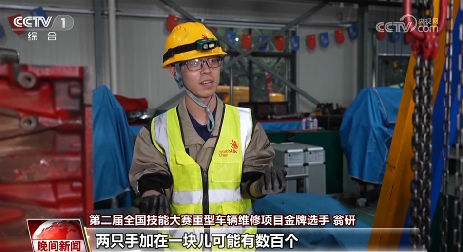 第二屆全國技能大賽重型車輛維修項(xiàng)目金牌選手 翁研:我們這個(gè)訓(xùn)練講究的就是熟練度,每天都在練。我記得有一次練得很累,在車上睡著了,一覺醒來,手上面都是蚊子包,兩只手加在一塊兒可能有數(shù)百個(gè)。