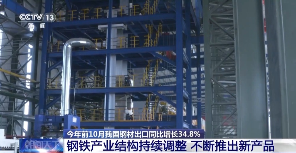 出口方面,今年前10個月,我國出口鋼材7473.2萬噸,同比增長34.8%,高附加值產(chǎn)品出口增長明顯。