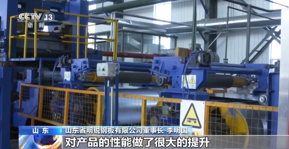 山東省明銳鋼板有限公司董事長 李明國:我們這個鍍鋁鋅產(chǎn)品,對產(chǎn)品的性能做了很大的提升,主要出口越南、泰國、巴西、土耳其等地方。像黃金色的,或者雙面綠、單面綠顏色,主要是針對出口,都是定制產(chǎn)品。