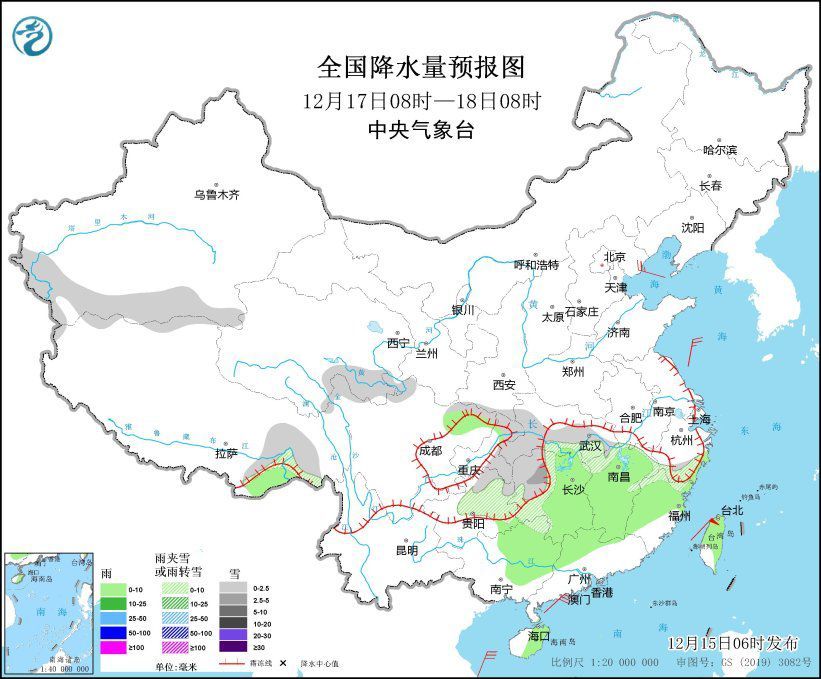 12月17日08時(shí)至18日08時(shí),新疆南疆盆地、西藏北部和東南部、青海南部、江漢、湖南北部和西部、江西北部、浙江南部、川西高原北部、重慶東北部、西南地區(qū)東南部等地部分地區(qū)有小到中雪或雨夾雪。湖南東部和南部、江西大部、福建大部、四川盆地北部、廣西東部、廣東西北部、海南島東北部、臺(tái)灣島大部等地部分地區(qū)有小雨。