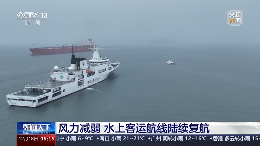 從12月17日12時起,根據(jù)海面風力情況,廣東珠海市內往返海島航線陸續(xù)復航,預計18日全部復航。江門川山群島海上客運航線于12月17日下午陸續(xù)復航,汽車渡運預計于12月18日復航。