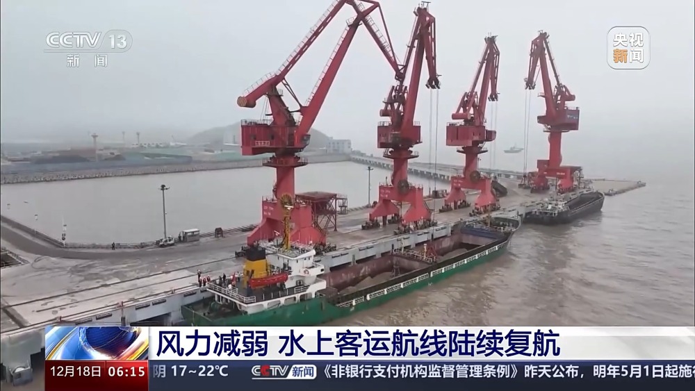 在浙江,因風力逐漸減弱,寧波舟山港核心港區(qū)大風管制全部解除。寧波海事部門協(xié)調安排載運電煤等能源物資的船舶優(yōu)先進港。截至17日夜間,已有5艘煤炭船靠泊卸貨,總卸貨量可達15.5萬噸,為相關電力企業(yè)提供原料保障。