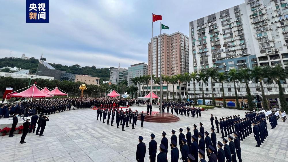 澳門(mén)特區(qū)政府20日在金蓮花廣場(chǎng)舉行升旗儀式,慶祝澳門(mén)回歸祖國(guó)24周年。