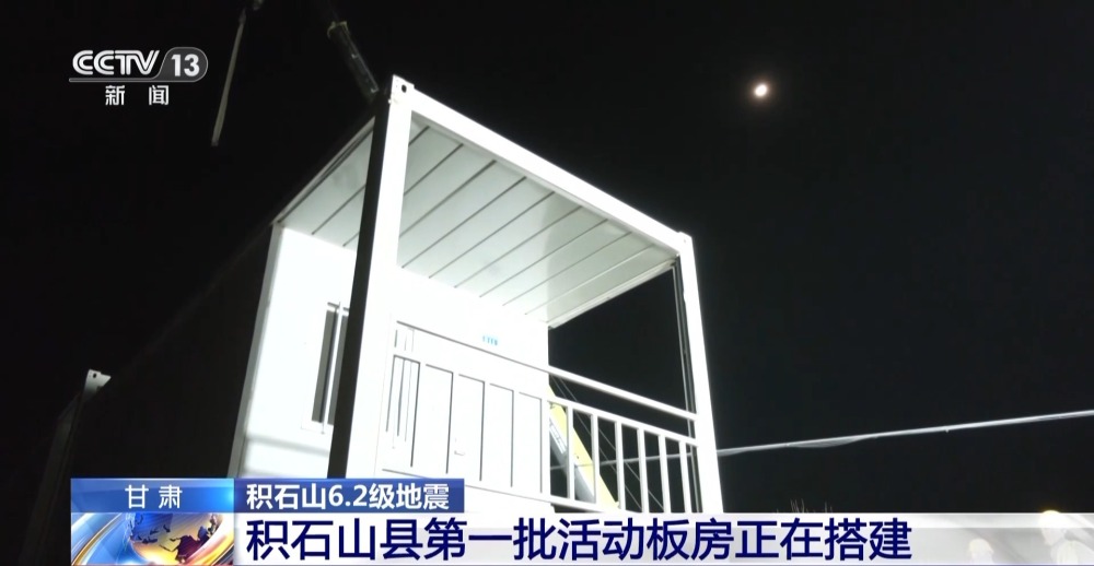 甘肅積石山縣第一批活動(dòng)板房正在搭建 救援物資全力支援