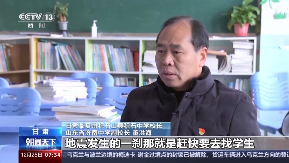 甘肅臨夏州積石山縣積石中學(xué)校長、山東省濟(jì)南中學(xué)副校長 董洪海:地震當(dāng)天的凌晨,就已經(jīng)有臨夏市的百姓到學(xué)校里邊送食物,有大量的救援的車輛、人員進(jìn)入,也感到了整個社會支撐的力量。我不是一個人在戰(zhàn)斗,是一個很大的團(tuán)隊(duì)。