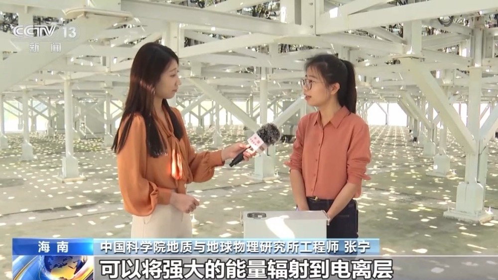 中國科學院地質(zhì)與地球物理研究所工程師 張寧:通過8320個組件可以將強大的能量輻射到電離層,然后電離層會散射微弱的回波信號。然后我們通過低噪聲放大和波形的編解碼,可以對微弱的散射信號進行分析,得到電離層的參數(shù),將電離層中電子和離子的狀態(tài),像顯微鏡一樣放大給科學家。