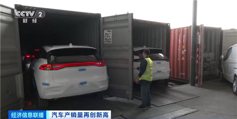 總臺央視記者 寧坤:在廣東深圳一處物流基地的前置倉,一批國產(chǎn)新能源汽車陸續(xù)裝入集裝箱,隨后將通過附近的蛇口港片區(qū)裝船出口發(fā)往東南亞國家。據(jù)了解,這是這家物流公司今年開年以后汽車出口業(yè)務(wù)的第一單。而在剛剛過去的2023年,由于汽車出口業(yè)務(wù)量猛增,他們在這里的倉庫面積短短一年間就擴(kuò)大了3倍。