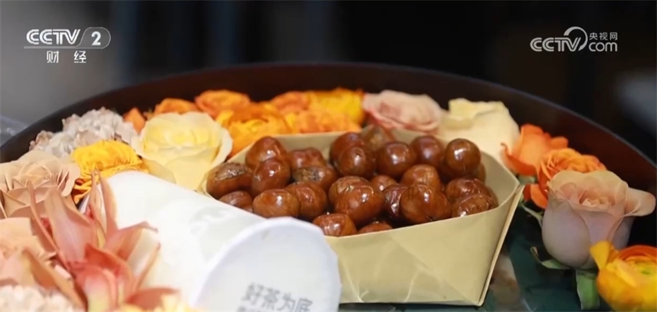 一些商家也是緊跟潮流,順勢推出“入冬四件套”禮盒。這家花店把鮮花、奶茶、糖葫蘆、糖炒栗子組合起來售賣,受到許多消費(fèi)者的歡迎。