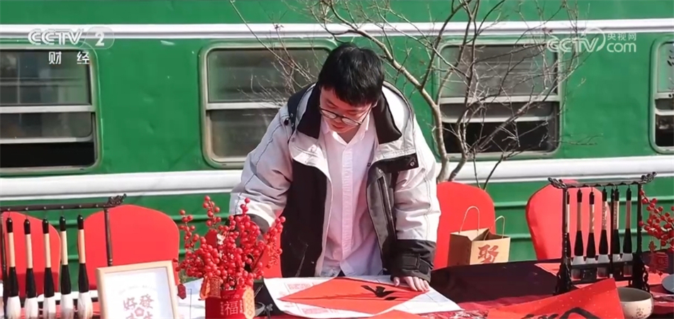 在熱鬧的年豬宴一旁,還有年畫拓印、新年剪紙、福字春聯(lián)的年味集市和打年糕活動(dòng),現(xiàn)場聚集了不少游客參與其中,感受熱鬧的氛圍。