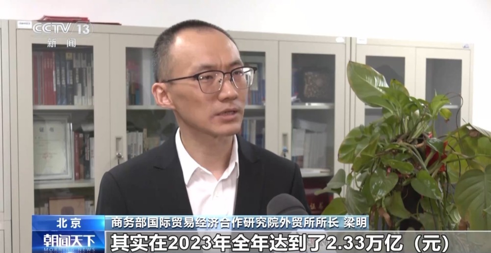 商務(wù)部國際貿(mào)易經(jīng)濟(jì)合作研究院外貿(mào)所所長 梁明:(我們的)跨境電商,在2023年全年達(dá)到了2.33萬億,同比增長15.6%,比去年增速是加快了5.8個(gè)百分點(diǎn)?!靶氯龢印蔽覀円彩鞘状瓮黄?萬億,增速是接近30%。