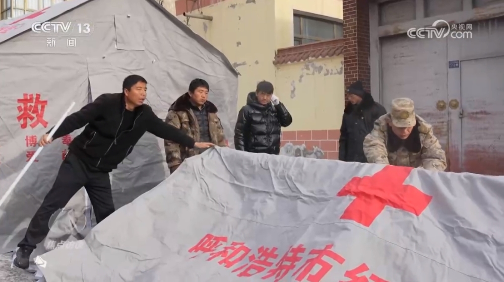 甘肅省臨夏州積石山縣石塬鎮(zhèn)振興社區(qū)副主任孔德義:“他發(fā)揮的作用特別大,因為他畢竟是部隊出身,身體素質好,搭帳篷這一塊特別強。有他在的話,5分鐘就能完成一個,效率特別高。還有像如何規(guī)避余震帶來的傷害,他先給先鋒隊講解,我們再逐個分散開給群眾講解,等同于一個專業(yè)人士帶領著先鋒隊去幫助更多的群眾,去服務群眾?!?/p>