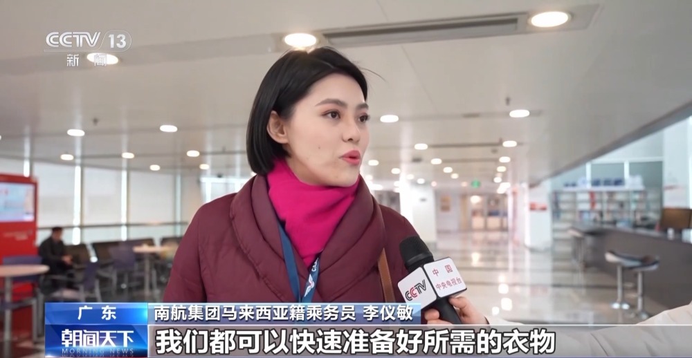 南航集團(tuán)客艙部乘務(wù)八部經(jīng)理 梁湘:我們的22名外籍乘務(wù)員分別來自馬來西亞、日本和韓國(guó),在他們的國(guó)家也有過春節(jié)的傳統(tǒng),但她們選擇留在崗位上。她們既是我們春運(yùn)的新面孔,也是保障服務(wù)的新力量。