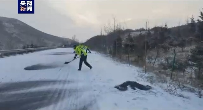 甘肅甘南藏族自治州多地國省道出現(xiàn)道路結(jié)冰,特別是背陰山路、橋梁、彎道路段積雪較厚,過往車輛通行不便。轄區(qū)交警啟動惡劣天氣應(yīng)急預(yù)案,加強道路巡邏頻次、撒防滑沙、安全提示、服務(wù)群眾、簡短放行車輛等措施,全力保障冰雪天氣下轄區(qū)道路的平安和群眾的安全出行。